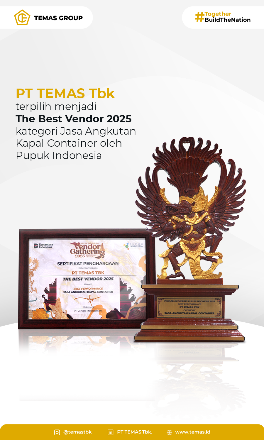 PT TEMAS Tbk received the award for The Best Vendor in the Container Shipping Services category.