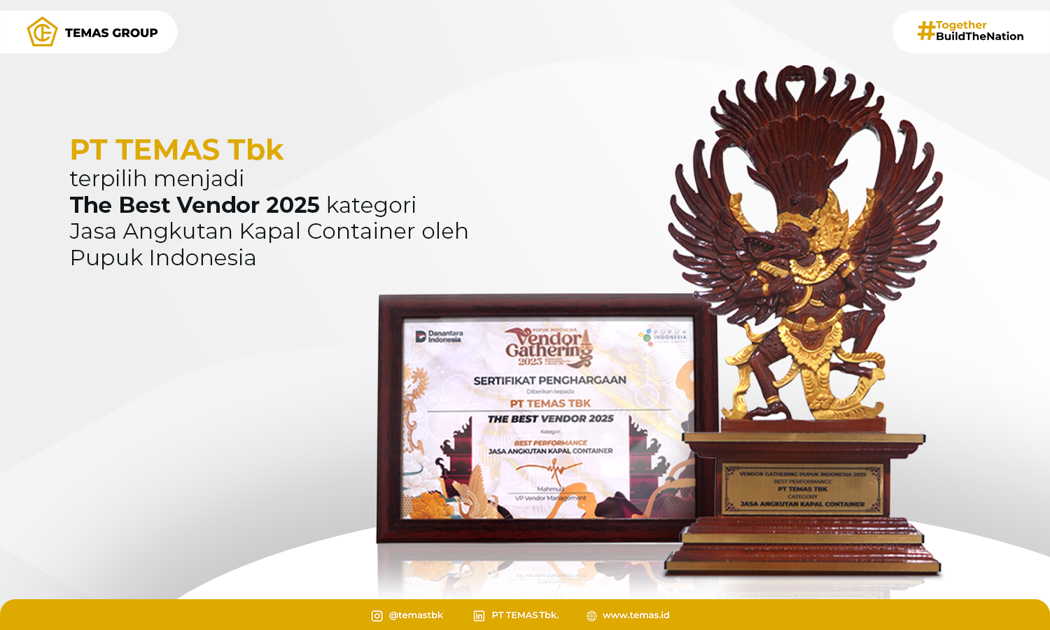 PT TEMAS Tbk received the award for The Best Vendor in the Container Shipping Services category.